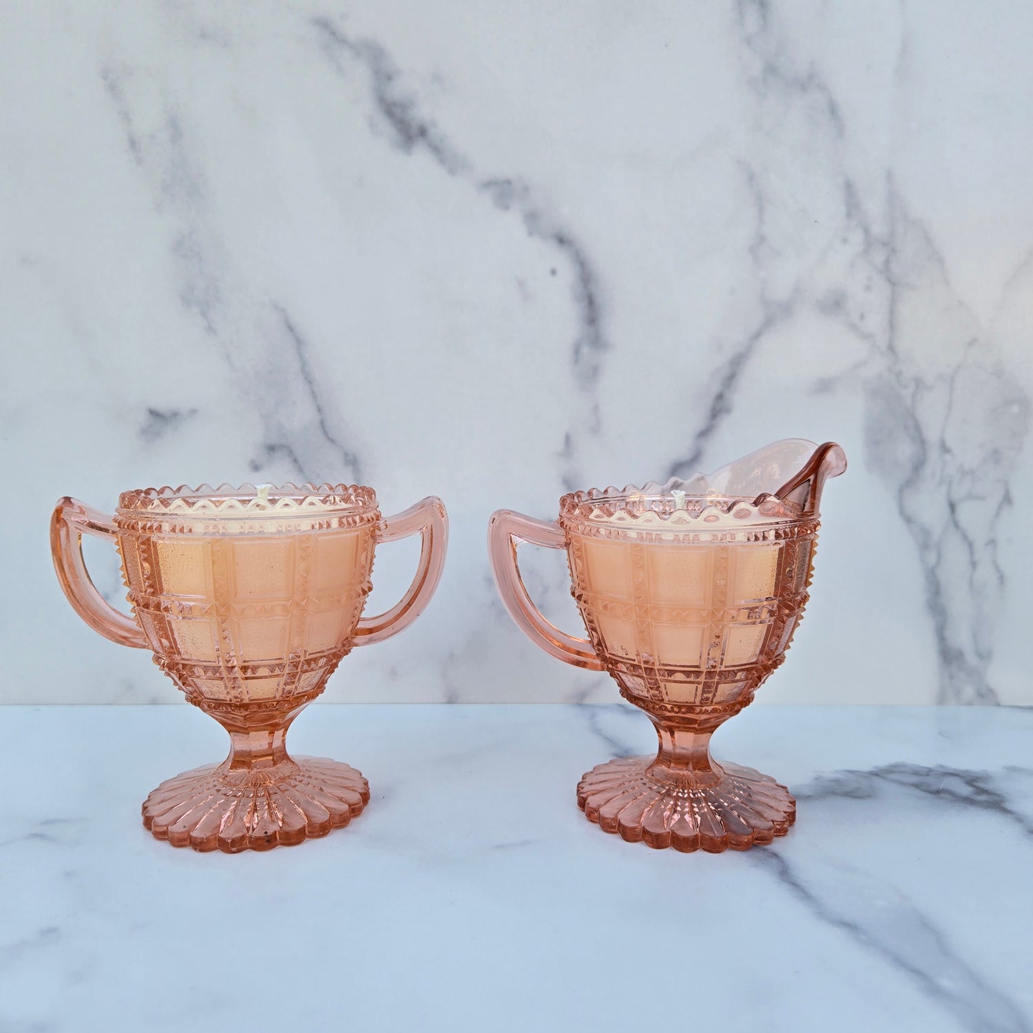 Imperial Pink Beaded Block Creamer & Sugar 1930